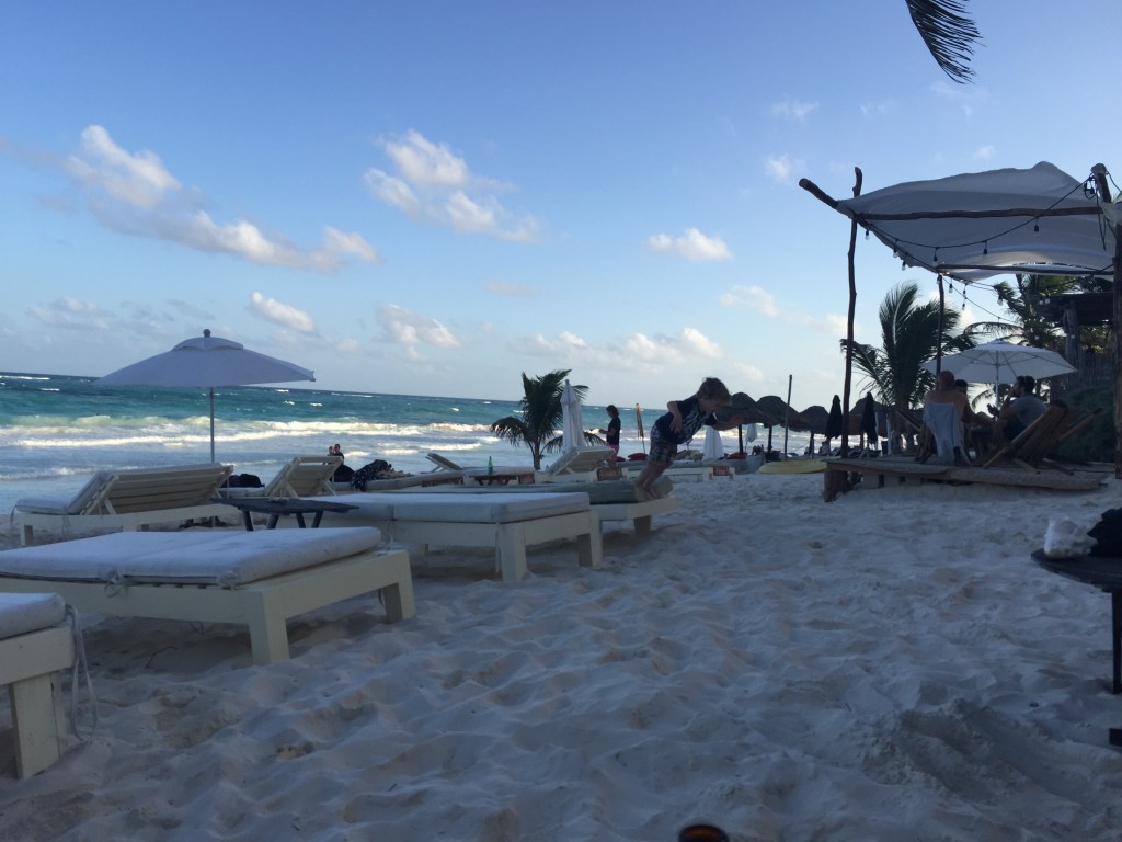But here’s where things got really interesting: our son Henry decided the ocean was his nemesis. While the rest of us reveled in Tulum’s incredibly warm, perfect-temperature water, Henry established himself as the beach’s most dedicated landlubber, sweating it out on the shore while shooting suspicious glances at the waves.