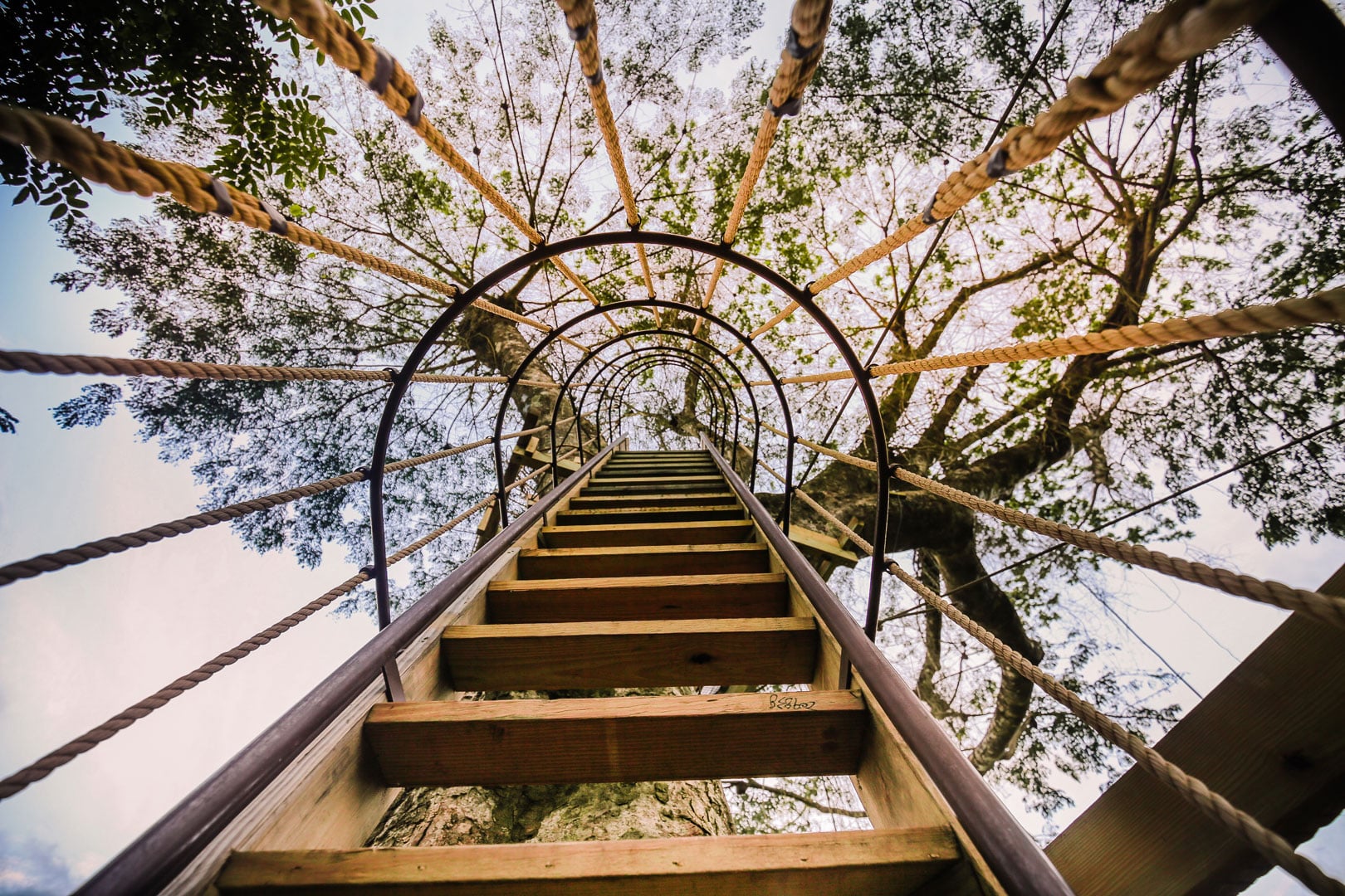 - Rope hammocks over the water