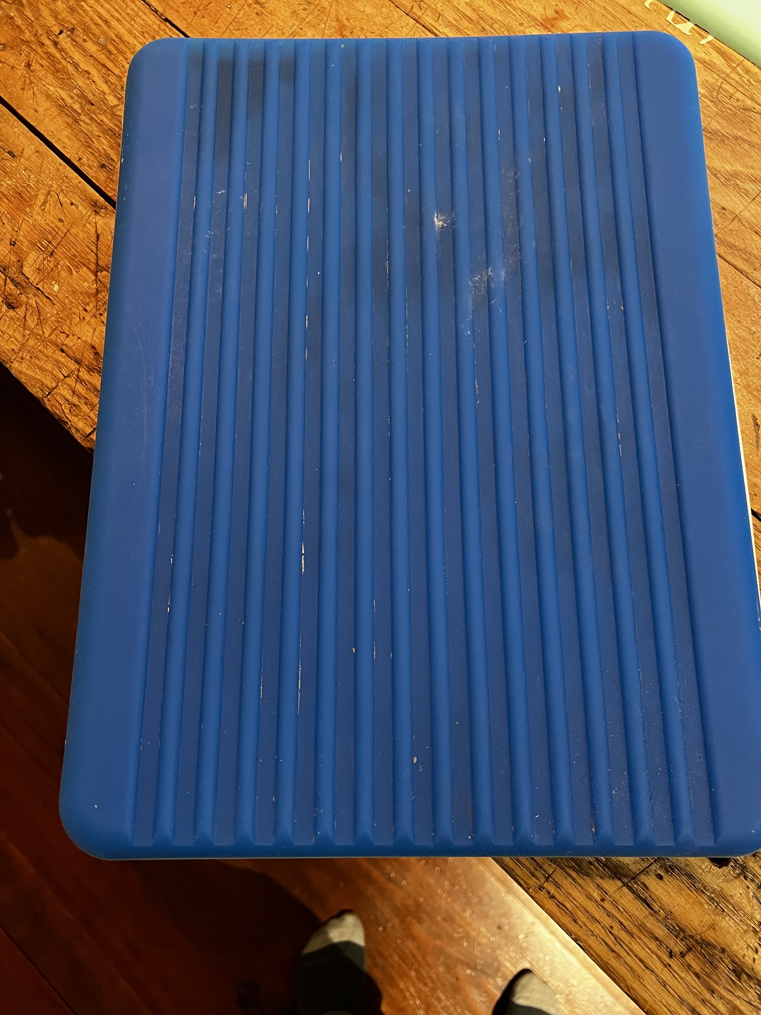 Then it hit me – why not combine them? I could put the silicone mold on the concrete, then the rigid Bondo mold upside down on top of that, with the toe-damaging weight on top of everything.