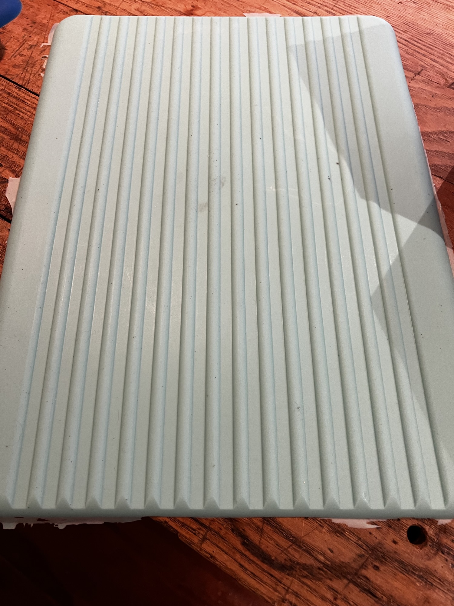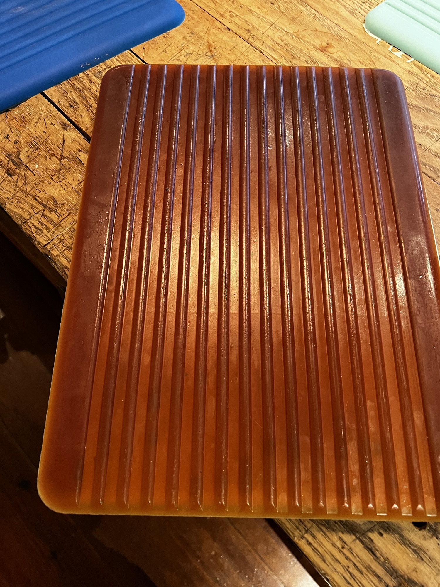 Several hours later, I peeled back the mold to reveal… a complete disaster. Half the material stuck to the mold, and because the mold was so soft, the material had a weird hump in it. Not exactly the pristine drain board I’d envisioned.