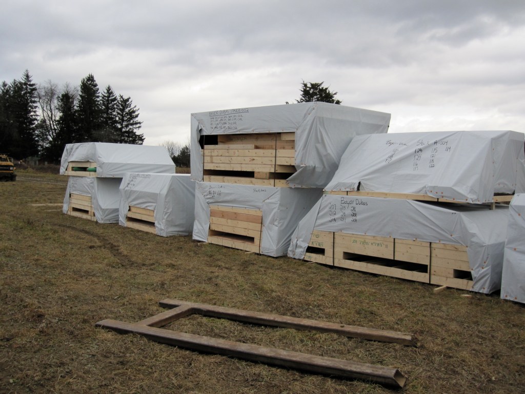 The heavy cutting and wall framing had already happened in Vermont under controlled factory conditions. This was one of the major advantages of the kit approach—precision factory work instead of field measurements.