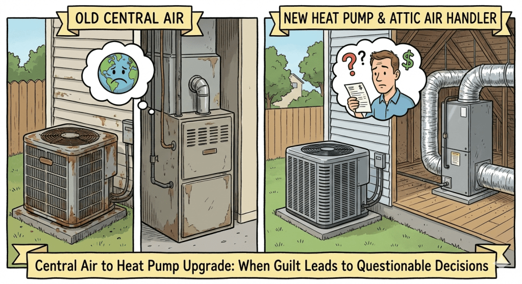 But guilt is a powerful motivator, and I made my choice. The system works. It’s installed. We have cooling and backup heat. The 0% financing and tax credit paperwork were helpful.