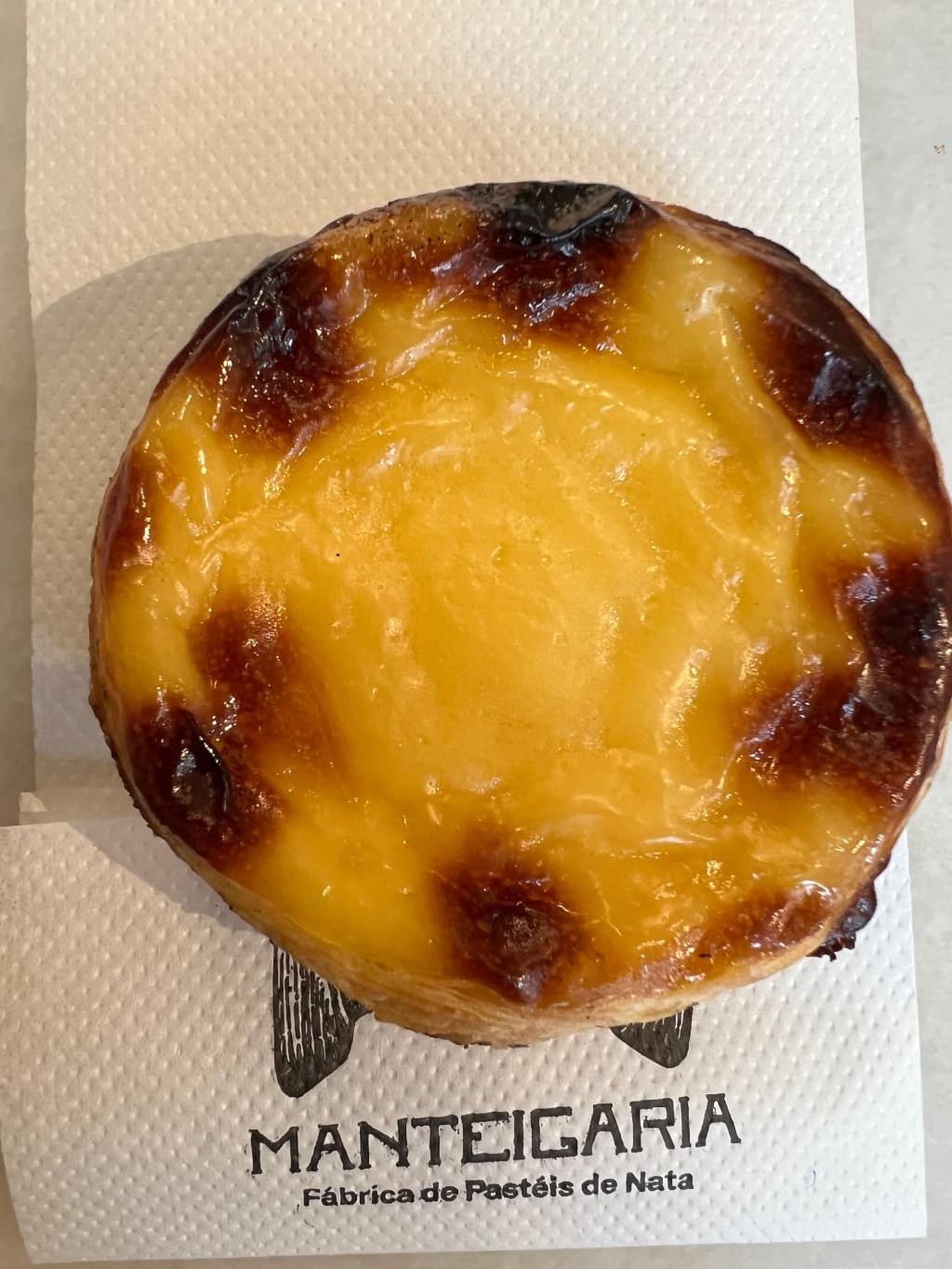 We still had plenty of time to kill, so we kept walking. It was drizzling—not a downpour, but not ideal weather either. Just a bit farther down the street, we came across Manteigaria, one of the most highly recommended pastel de nata bakeries in Lisbon. When you see a place like that, you have to stop. We each had one (maybe two), and they were absolutely delicious—warm, flaky, and far better than the first ones we tried.