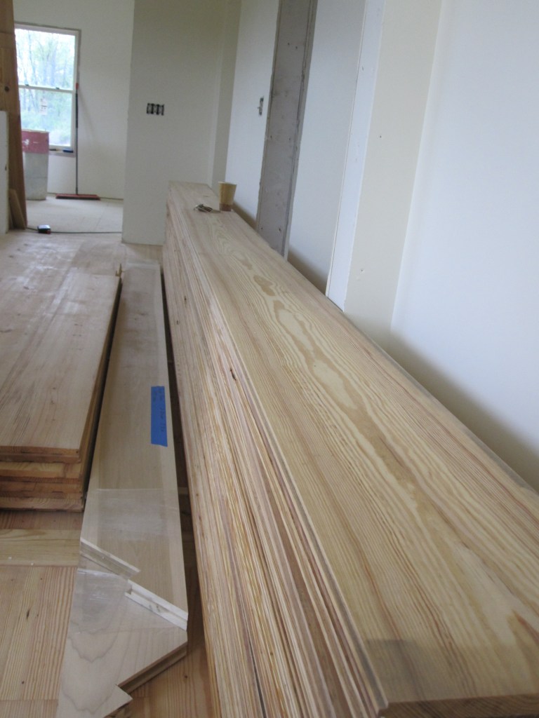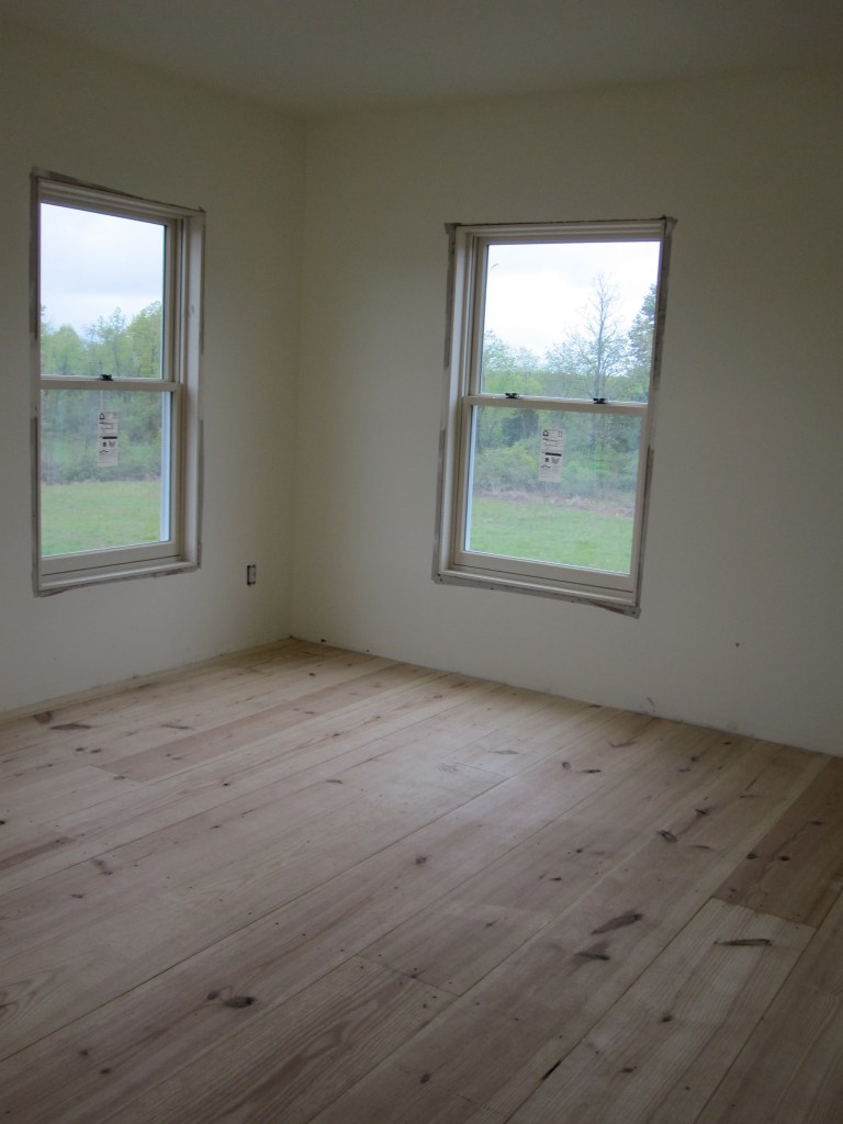 Through extensive internet research and calling around for samples, I discovered Heart Pine flooring. Heart Pine is cut from the heartwood of old-growth pine trees and is significantly harder than regular white pine. It’s not as hard as oak or other hardwoods, but it’s a middle ground — harder than soft pine, cheaper than hardwood, with the wide plank aesthetic we wanted.