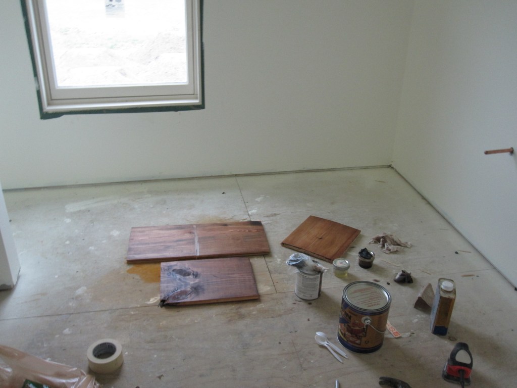 I tried various stains from the big box stores — MinWax and others. Too light. Too orange. Too something. Nothing looked right.