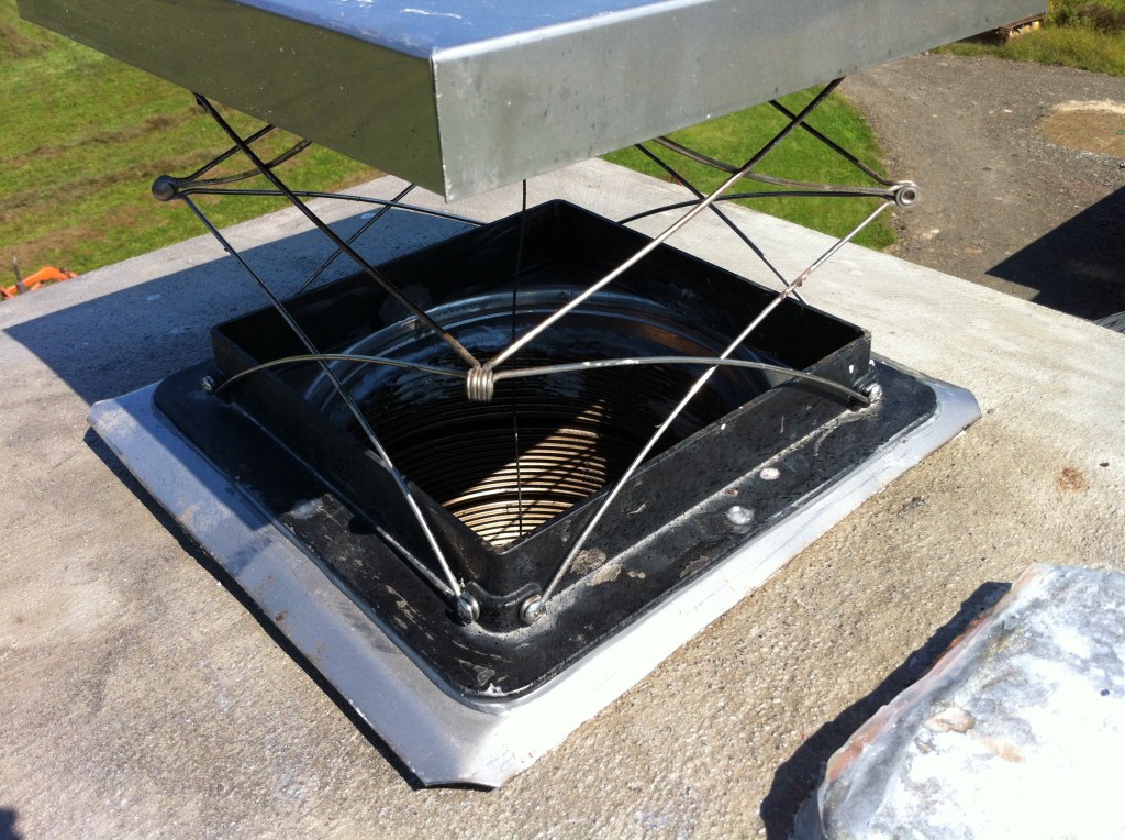 My friend helped me at the top — going up on that terrifying roof to deal with the cap and damper situation. Between the two of us, we got a proper termination with a drip edge that would actually shed water.
