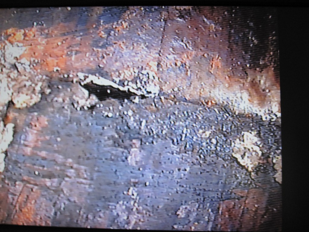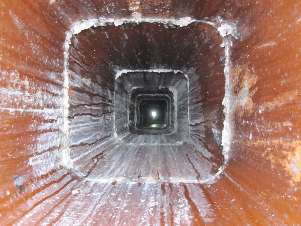 So I find a chimney lining company that does a ceramic spray application — they come in, coat the interior of the flue with a ceramic sealant, and you’re supposedly done. It wasn’t cheap. They did their inspection first, and that inspection revealed what I’d suspected: the mortar joints inside the flue were not solid. There were gaps. There were holes. Of course there were.