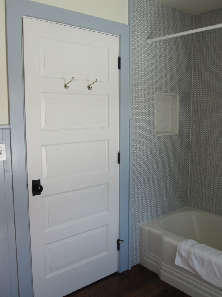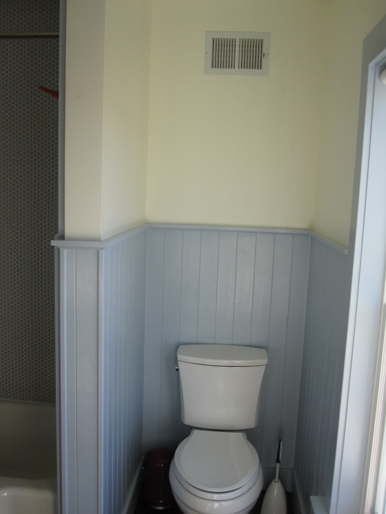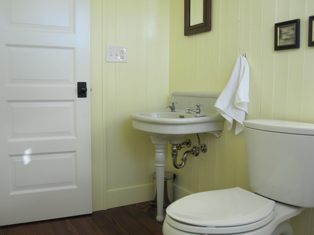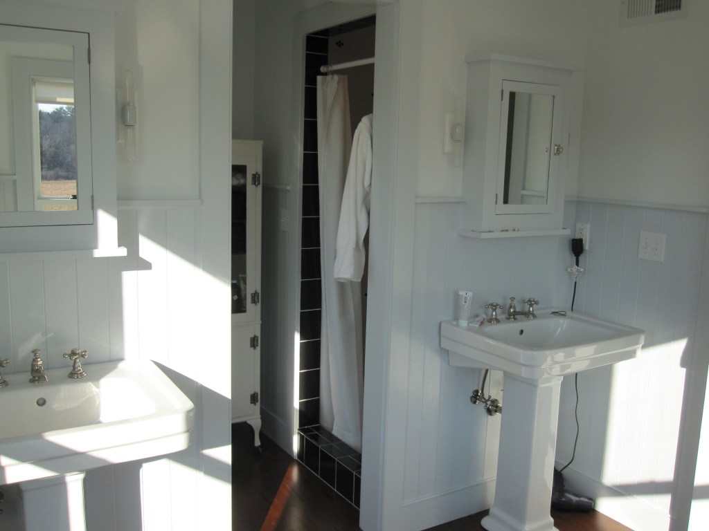 The layout otherwise followed the house. Upstairs, two bedrooms share one bathroom — that’s the kids’ bathroom, and has been for years. On the master side of the second floor, there’s a private bath off the bedroom, with a separate water closet for the toilet. That last part was Jennifer’s call and she was right, as usual.