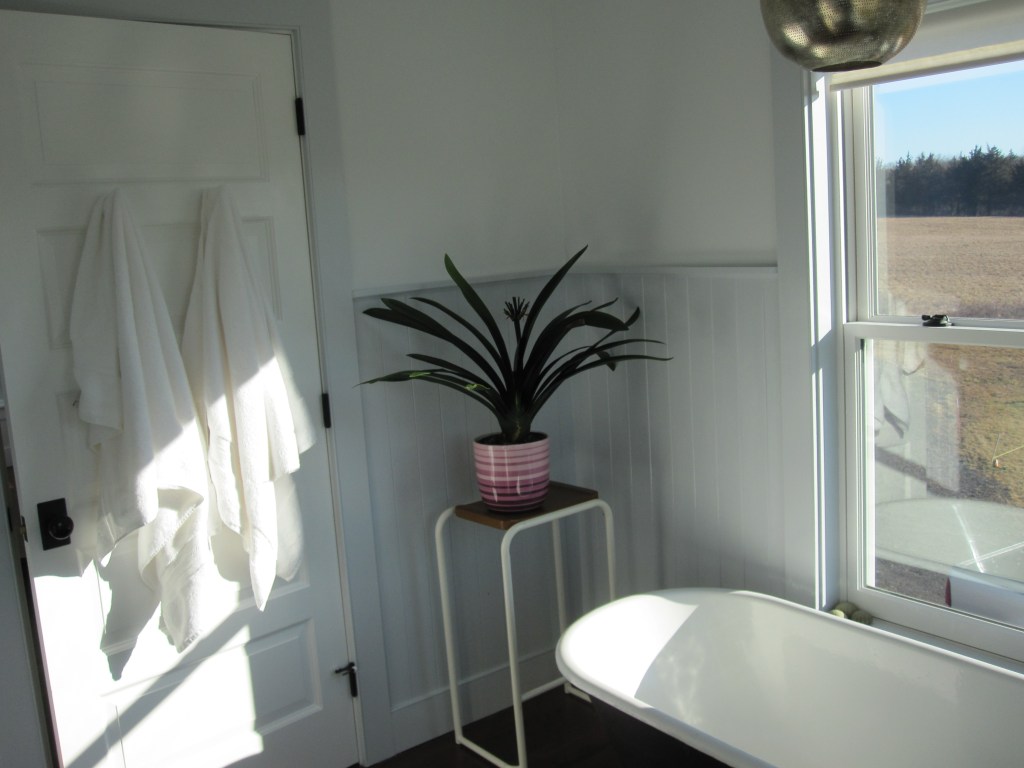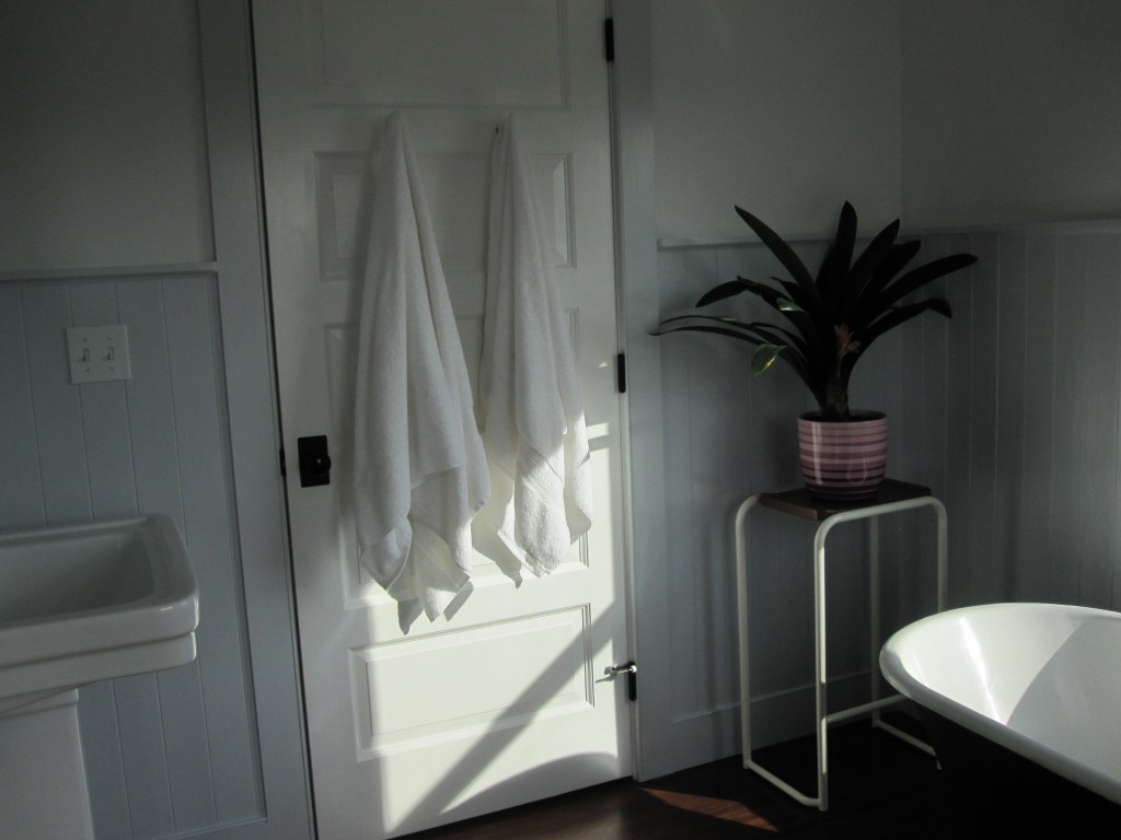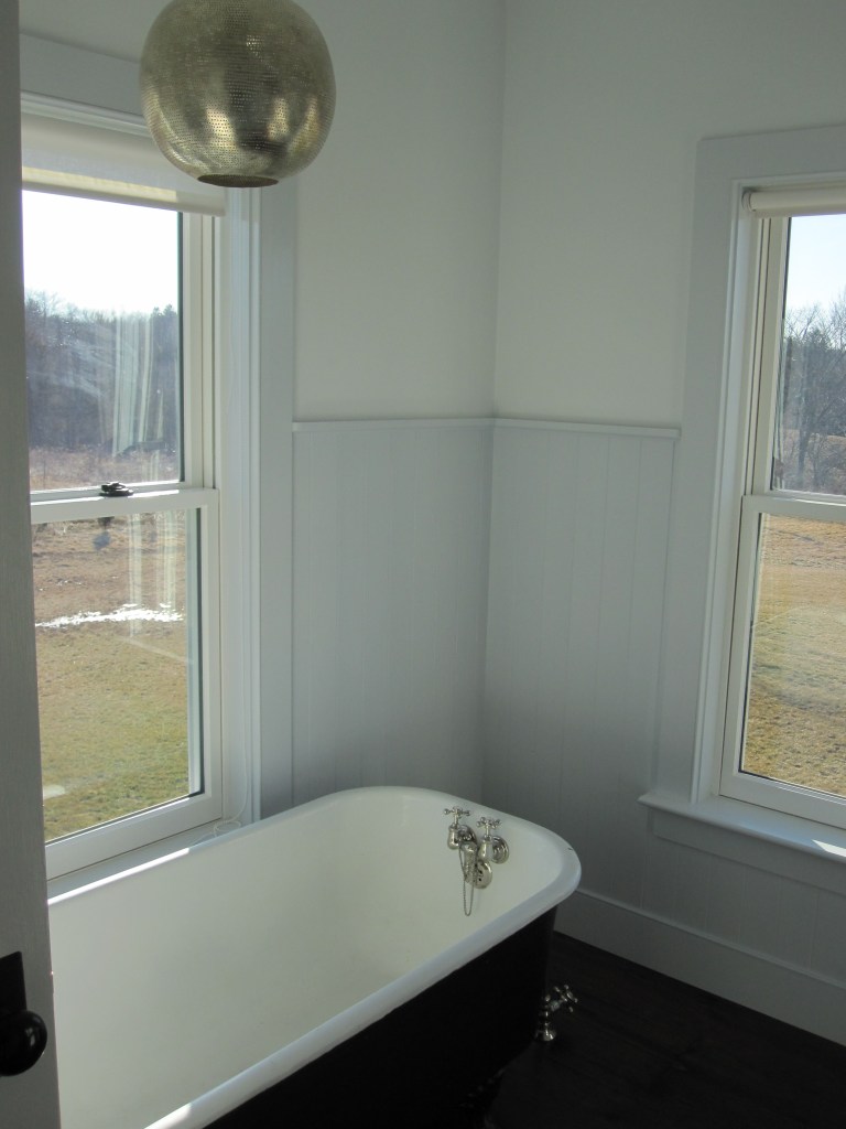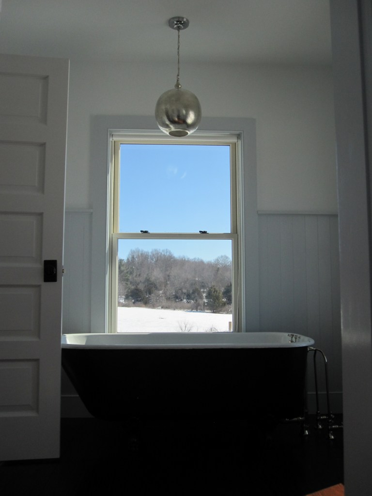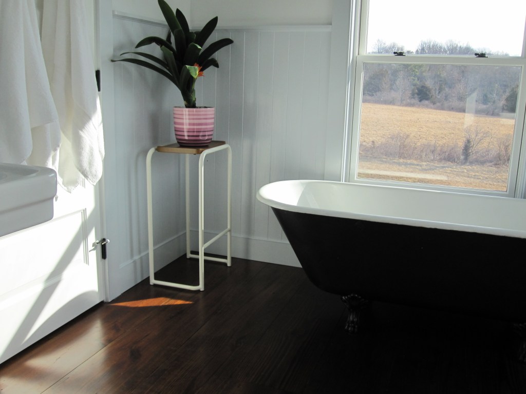 The clawfoot in the master bath had the same problem — surface gone — plus a bonus problem we also didn’t notice: one of the legs had broken off. Cast iron. These legs are not an afterthought. I found a guy who thought he might be able to weld it, wasn’t sure because cast iron is a particular thing to weld, but he did it and it’s held. Then we had the tub resurfaced. It looks fine now. We almost never use it — we’re not bath people — and at this point it’s more of a period piece than a fixture, sitting in front of the window doing its job as a visual. The master bath has a separate shower, so the tub is really just there to maintain the general sense that the house has been around for a while.