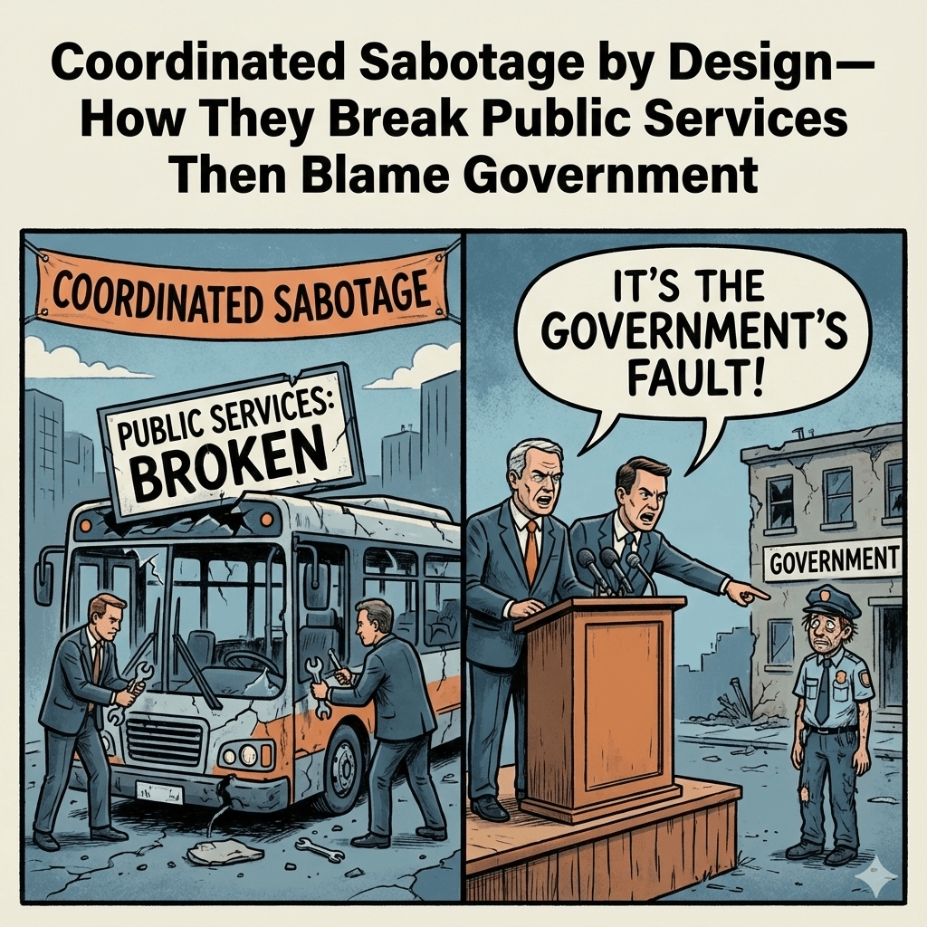 Broken By Design Part 21: Coordinated Sabotage—How They Break Public Services Then Blame Government