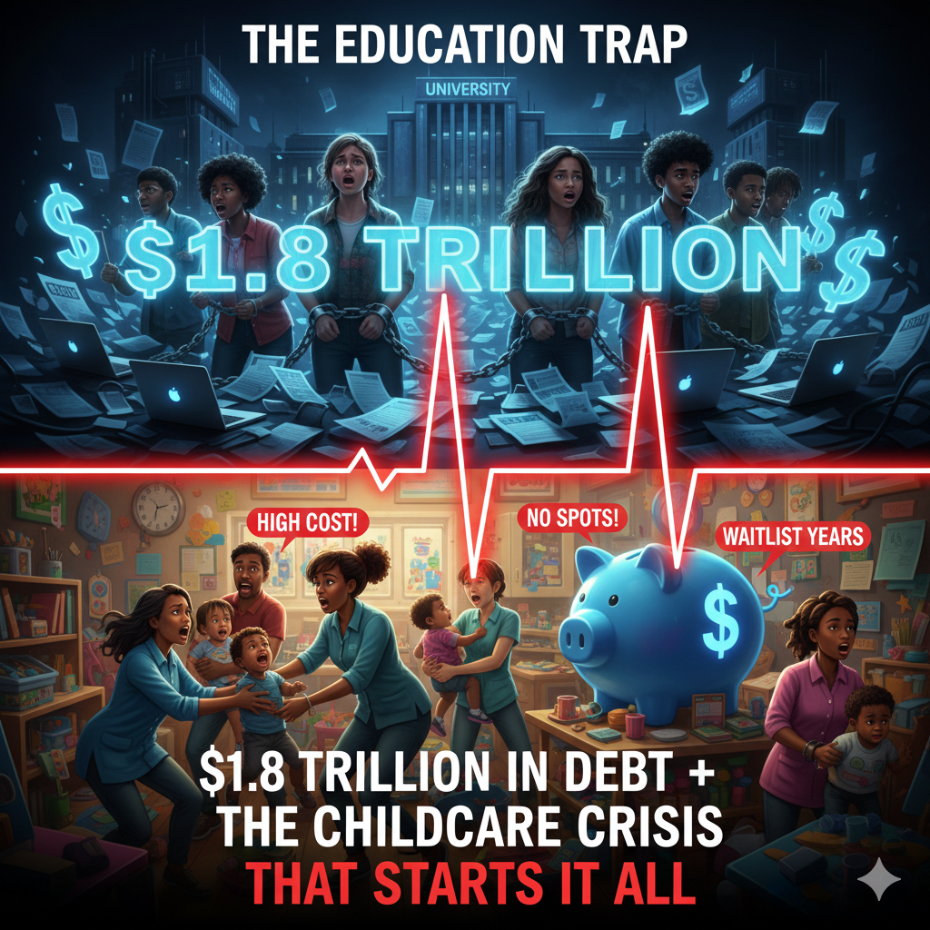Broken By Design Part 8: The Education and Childcare Cliff: $1.8 Trillion in Debt + The Childcare Crisis That Starts It All